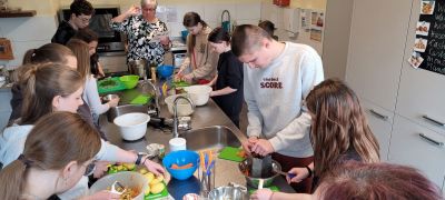 Am 11. und 12. März 2024 war wieder Polnisch auf der Kinder- und Jugendfarm zu vernehmen. Schüler von Schulen aus Lubomierz und Nowogroziec trafen sich erneut zum gemeinsamen Lernen und Kochen mit Schülern aus Wittichenau und Hoyerswerda. Dieses Mal standen die Projekttage zur nachhaltigen Ernährung ganz im Zeichen der Kräuter. Mit Hilfe der Nutzung der zweisprachigen Lernplattform „netsus“ erfuhren die Schüler der 6. bis 8. Klassen, alles Wichtige über Heilpflanzen, Wildkräuter sowie Küchenkräuter. So staunten die Teilnehmer der Projekttage über den vielfältigen Einsatz der bedeutenden, jedoch oftmals unbekannten Pflanzen in der Medizin bzw. Kosmetik und in der Küche. Durch die Schüler wurden zum gemeinsamen Mittagessen verschiedene Speisen und Getränke mit frischen Kräutern selbst zubereitet. Besondere Freude machte die Herstellung eines eigenen Lippenpflegestiftes, der mit nach Hause genommen werden durfte. Die nächsten grenzüberschreitenden Projekttage finden bereits Anfang April 2024 auf der Kinder- und Jugendfarm statt. Das Angebot deutsch-polnischer Projekttage im Ernährungszentrum auf der Kinder- und Jugendfarm in Hoyerswerda ist an alle Schulen aus der Euroregion Neisse gerichtet. Diese Maßnahme wird mitfinanziert durch Steuermittel auf der Grundlage des vom Sächsischen Landtag beschlossenen Haushaltes.