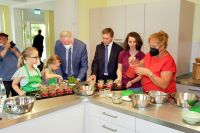 Der Sächsische Staatsminister für Regionalentwicklung, Thomas Schmidt, hat am 5. Juli 2021 die neue Lehrküche im Ernährungszentrum auf der Kinder- und Jugendfarm in Hoyerswerda feierlich eröffnet. Der Lernort für nachhaltige Ernährung im sächsischen Teil der Euroregion Neisse wurde damit offiziell seiner Bestimmung übergeben. Der Staatsminister dankte allen Beteiligten für ihr Engagement und ließ es sich bei diesem Anlass nicht nehmen, zusammen mit weiteren geladenen Gästen und den Mitarbeitern in der Küche passend zum sonnigen Wetter einen erfrischenden Beeren-Spritz zuzubereiten.